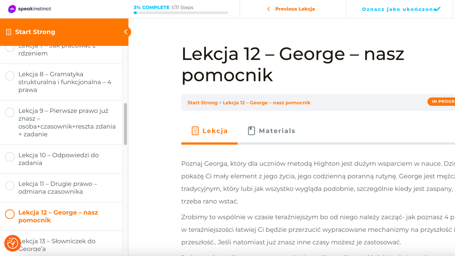 Kurs, już na samym wstępie uświadomił mi ile czasu na próbę nauki j. angielskiego zmarnowałem, nie przynosząc żadnego większego efektu. Kurs pokazał mi jak zmienić nie tylko podejście ale samo uczenie języka. Jestem pełen optymizmu i wiar, że tym razem jest to strzał w 10, let's begin 😉